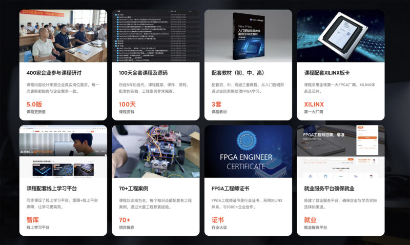 成电国芯FPGA培训基地课程以80%实操为核心,依托400家企业参与课程开发,采用XILINX合作体系与双师教学,通过大量实战项目锤炼工程能力。