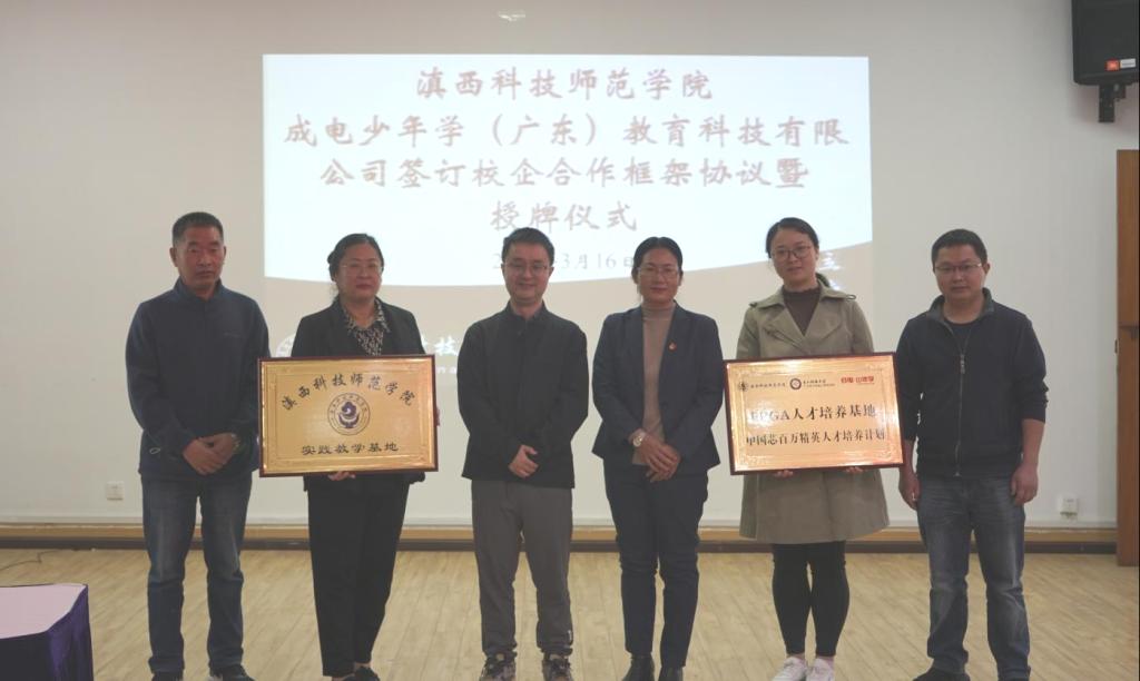 3月16日,成电少年学(广东)教育科技有限公司与我校(滇西科技师范学院)签订校企合作框架协议,并进行互相授牌。