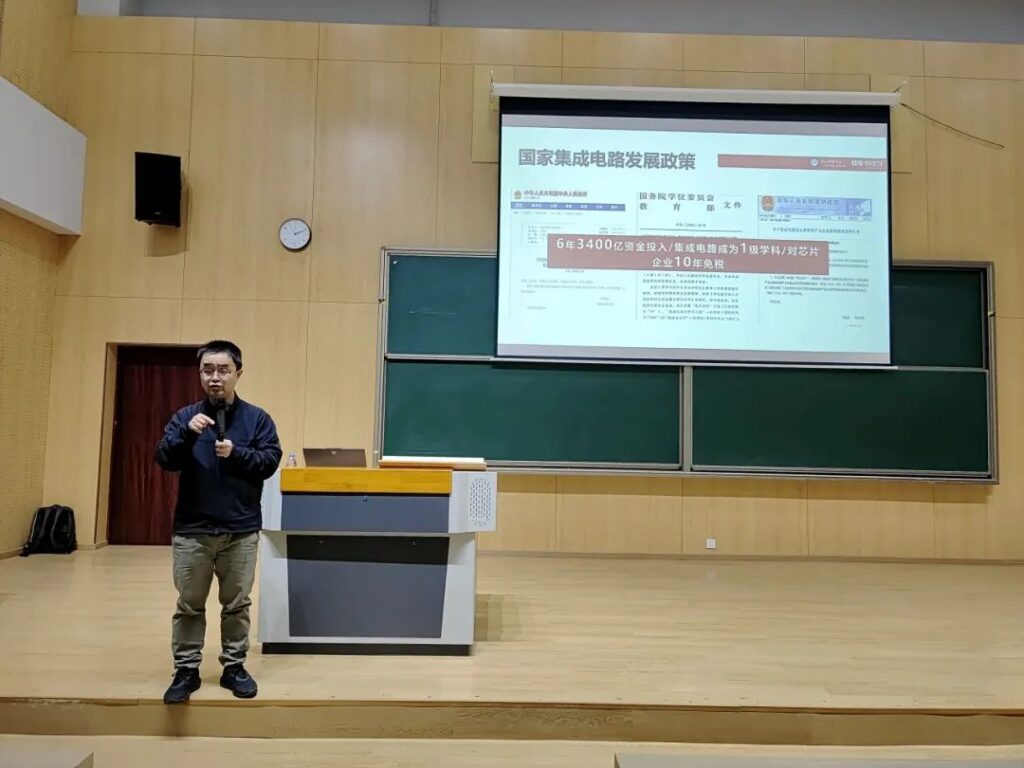 讲座伊始,邓总以芯片与当前最前沿的技术相结合为切入点,详细讲解了芯片是如何与现实生活相联系等问题。同时,他还一一列举了和芯片息息相关的技术,如:5G通信、人工智能等,让同学们真实感受到芯片本身的重要性以及生活中涉及领域的广泛性。