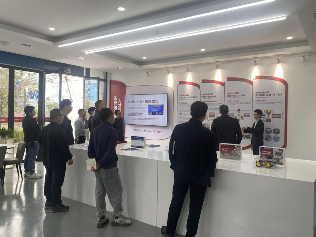在考察过程中,怀化学院的领导和老师们深入了解了成电国芯FPGA广东人才培养基地的教学环境、实训设施、课程体系等方面的情况。我们对怀化学院领导和老师们的专业素养和敬业精神表示由衷的敬佩。同时,我们也希望此次考察能够为双方今后的合作奠定坚实的基础。