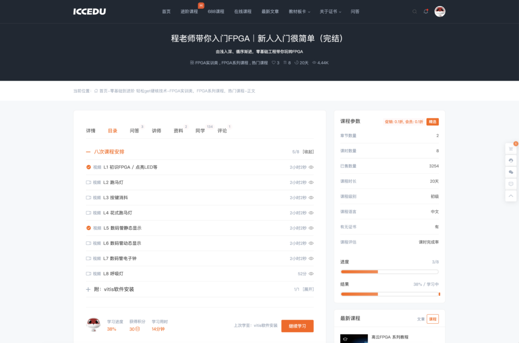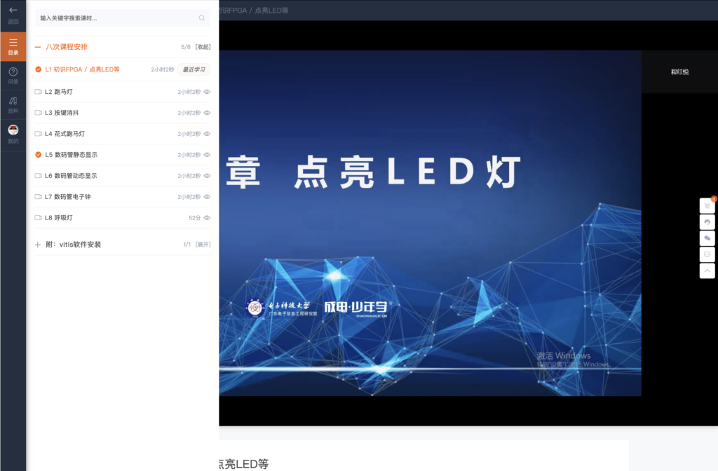 课程体系:平台提供全栈式的FPGA课程,包括FPGA入门课程、项目课程、进阶课程以及国产FPGA高云课程等,从入门到精通,满足不同层次学员的学习需求。