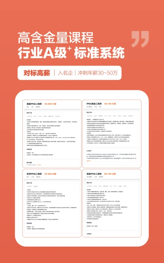 选择成电国芯FPGA精英就业班,就是选择了一条通往未来科技前沿的道路。在这里,你将与志同道合的伙伴一起探索FPGA技术的无限可能,共同开启属于你们的芯职业、芯未来。