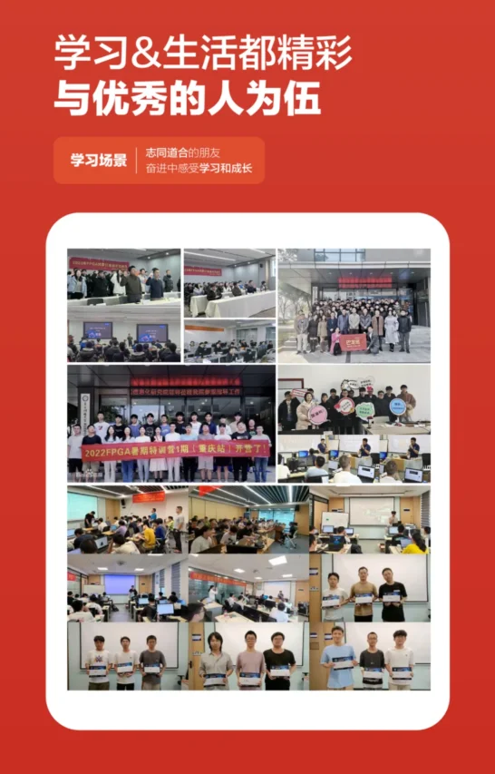 - 线下学习:成电国芯有成都FPGA人才培养基地、重庆FPGA人才培养基地、广东FPGA人才培养基地,为学员们提供了线下学习方案,通过4个月的沉寝式学习,可以系统的完成FPGA课程学习,通过考核后推荐就业,https://www.guoxinedu.cn/fpgalearning。