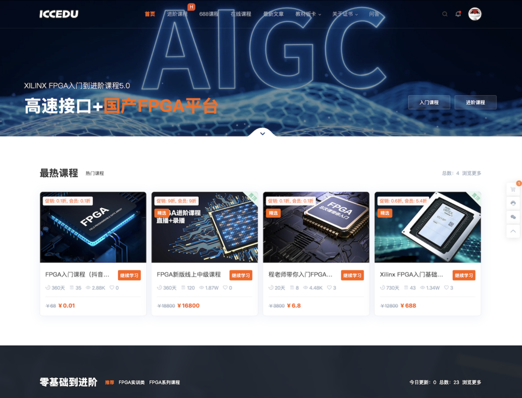 此外,成电国芯还提供线上FPGA学习平台,课程费用从0.1元到12800元不等,具体取决于课程内容和学员需求。同时,对于高阶课程部分,还配套了相应的FPGA开发板块及外设等,价格从几百元至五千元不等。