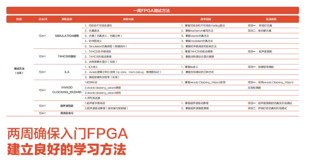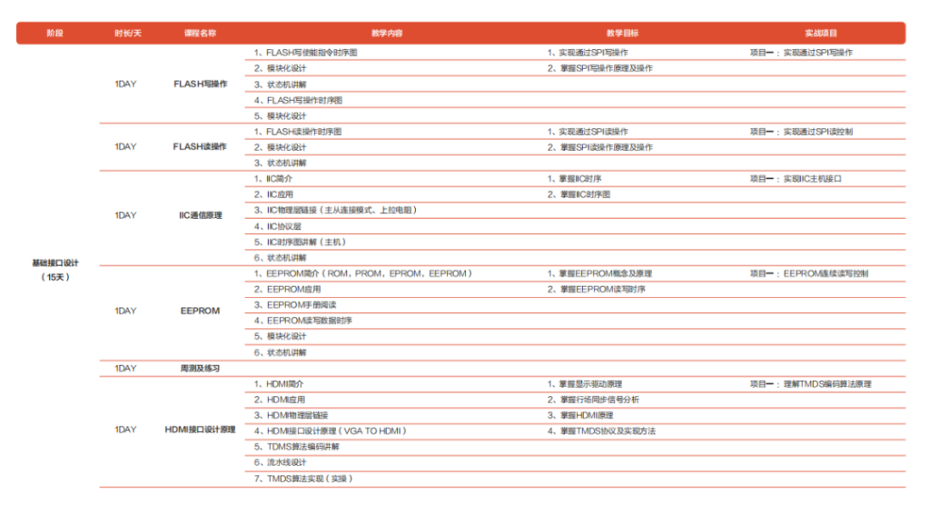 – 行业解决方案:针对特定行业(如金融、医疗、安防等)提供 FPGA 解决方案。不同行业对 FPGA 的需求和应用场景不同,学员需要了解不同行业的需求和特点,掌握 FPGA 在不同行业中的应用技术,能够为特定行业提供定制化的 FPGA 解决方案。