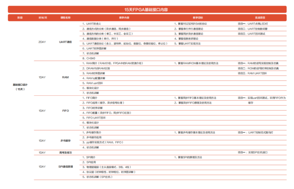 成电国芯的 FPGA 就业班课程安排大致如下: