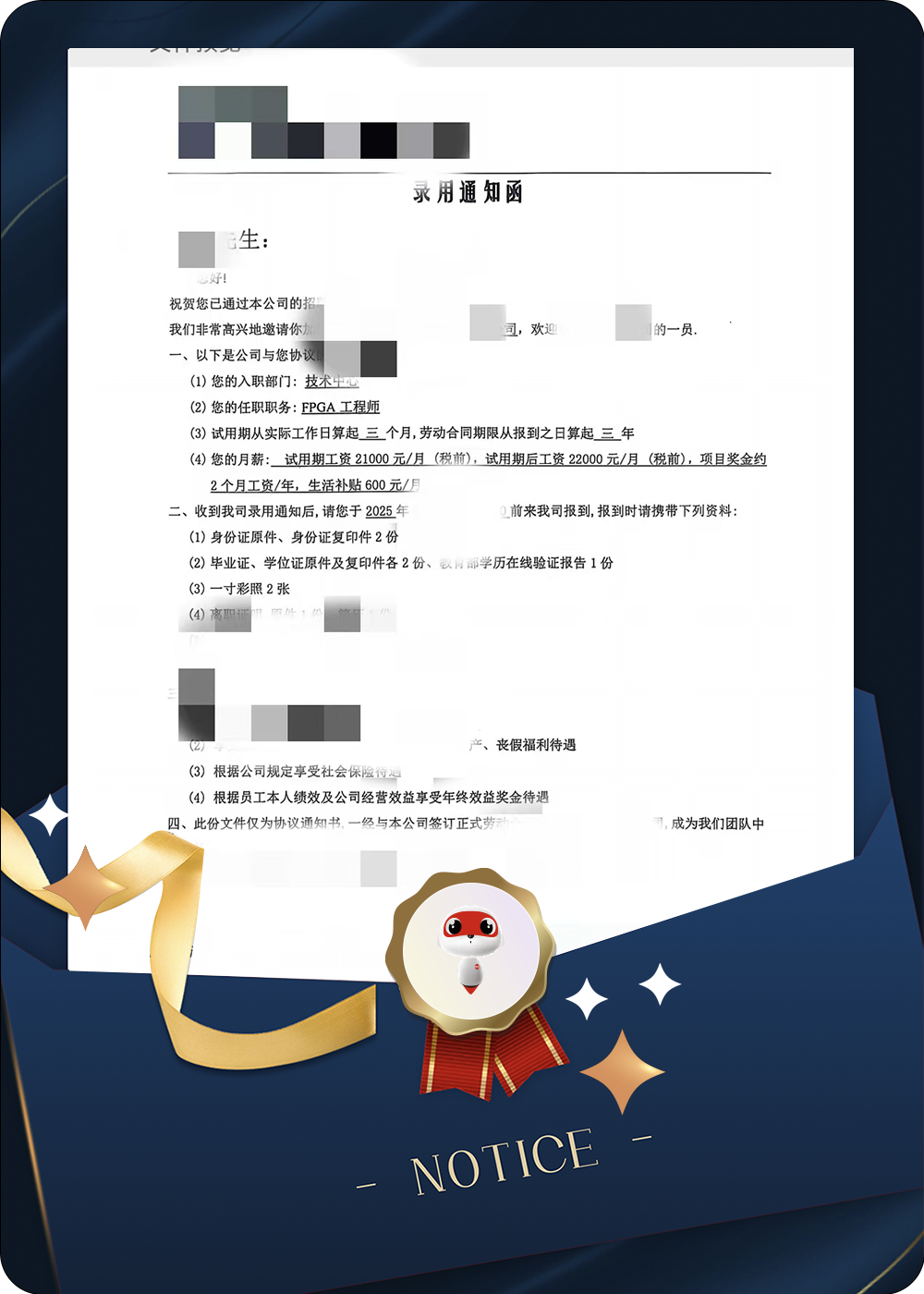根据offer信息,梁同学将享受极具竞争力的薪酬待遇: