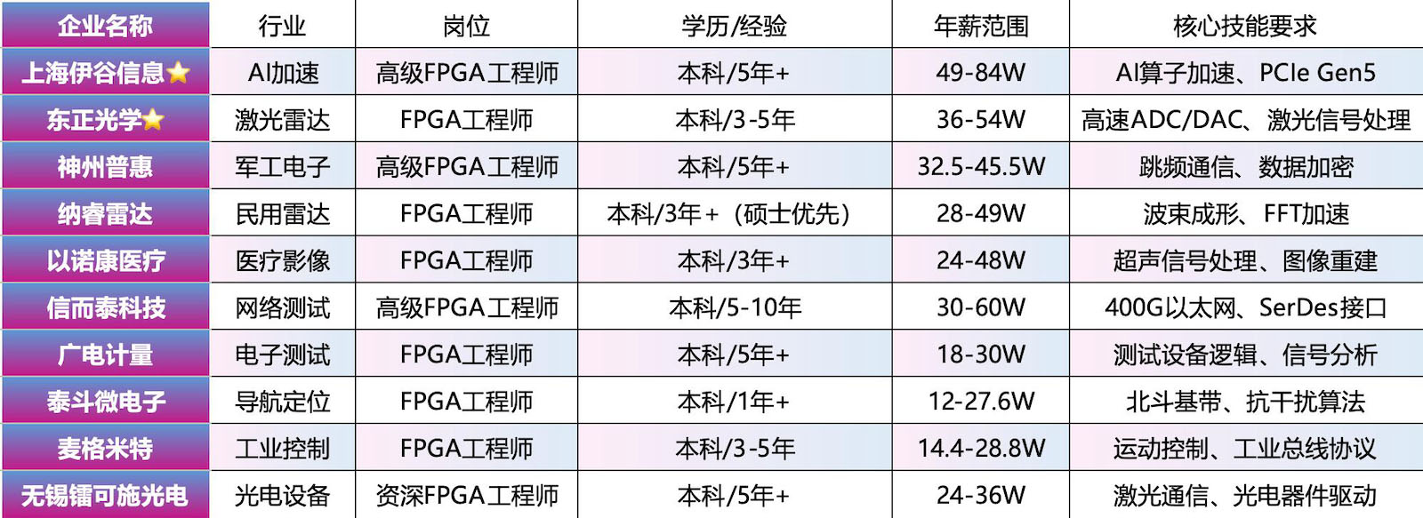 对于工科生而言,FPGA行业的魅力不仅在于高薪,更在于其“技术迁移的长生命周期”:掌握FPGA开发后,可横向拓展至芯片设计(ASIC前端)、系统级开发等领域,纵向深耕于通信、医疗、航天等垂直场景,职业路径随经验积累持续拓宽,完美规避“35岁职场危机”。