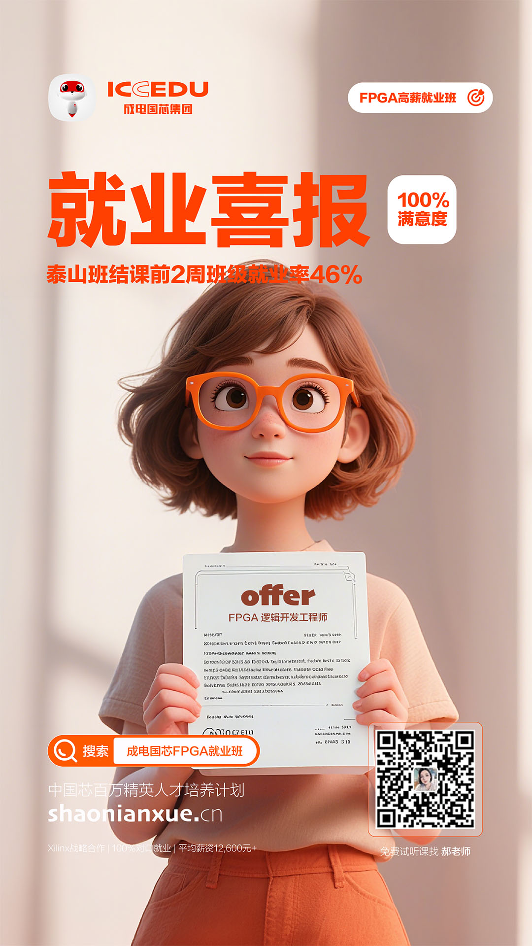 当传统工科就业面临“僧多粥少”的困境时,FPGA行业的人才缺口与高薪特性,为工科生提供了“换道超车”的机遇。成电国芯以“实战化教学”与“精准就业服务”为支点,已帮助数千名学员实现从“校园”到“企业核心岗”的跨越。对于渴望在硬科技领域扎根的工科生而言,选择FPGA,选择专业引路人,或许正是开启高薪职业生涯的关键一步。