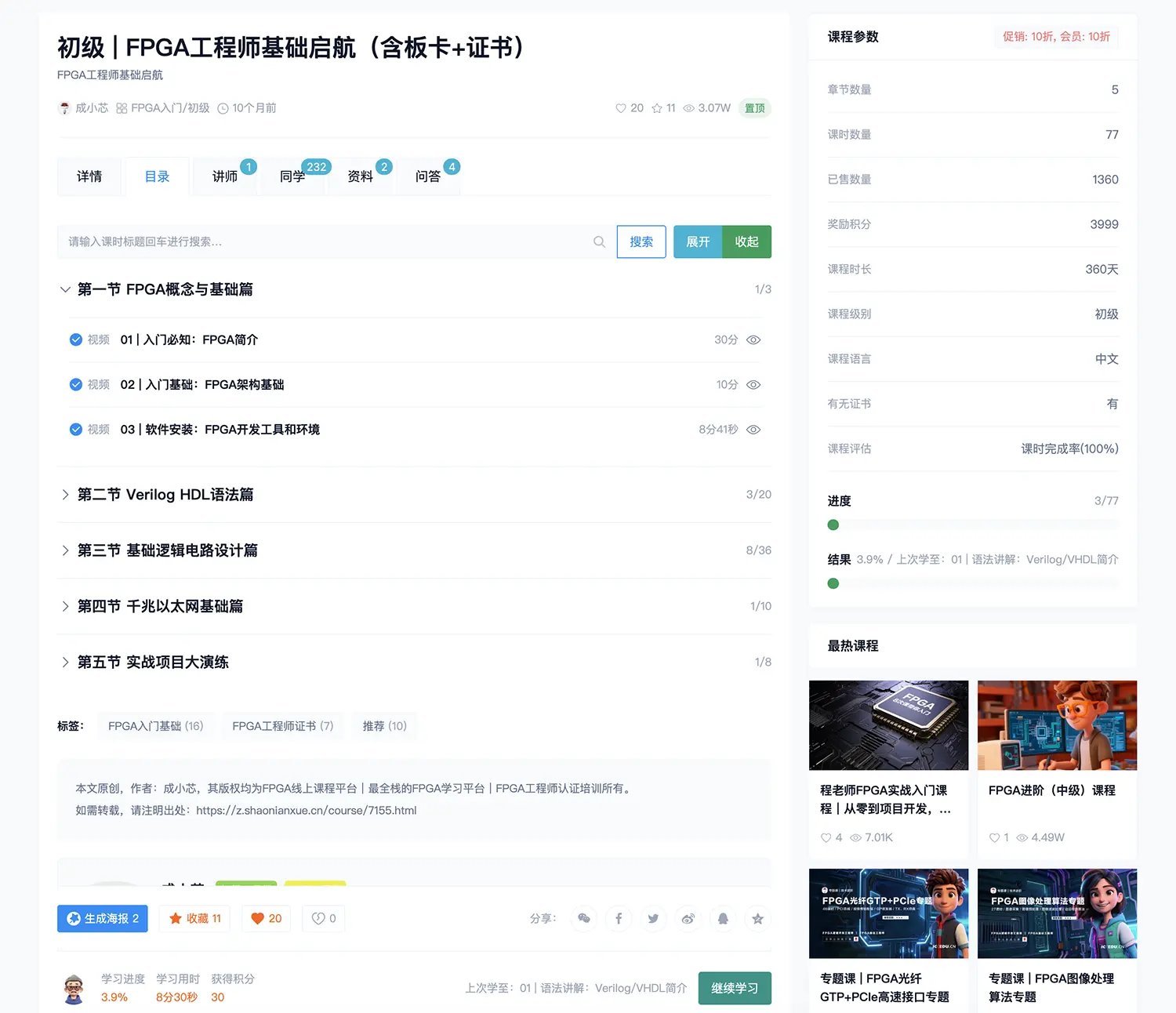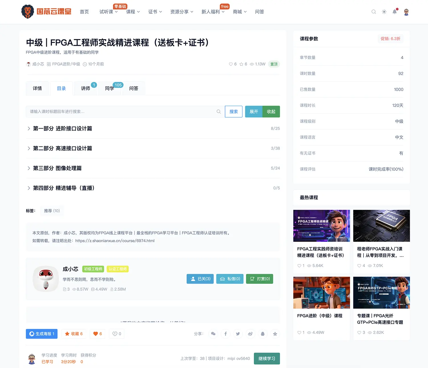 长期有保障:课程终身更新,AI加速、国产FPGA这些前沿技术都能免费学。