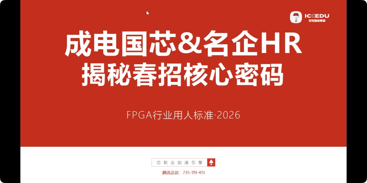 2月底开班名额有限,试听课与线上先导课福利限时锁定!立即联系郝老师:13258207810(微信同号),领取免费试听课、咨询课程详情,专属顾问一对一解答疑问。别再让犹豫错失高薪机会,跟着成电国芯解锁FPGA技能,叩开芯片行业高薪大门,抢占最后入学席位!