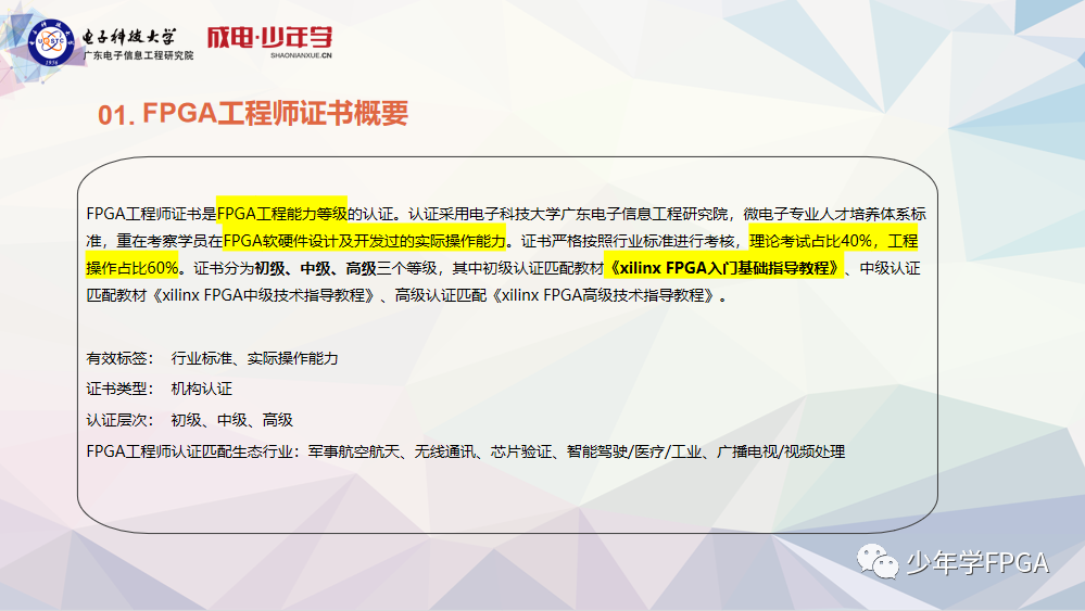 关于《FPGA初级工程师证书》,为行业认证。相关介绍及就业方向如下: