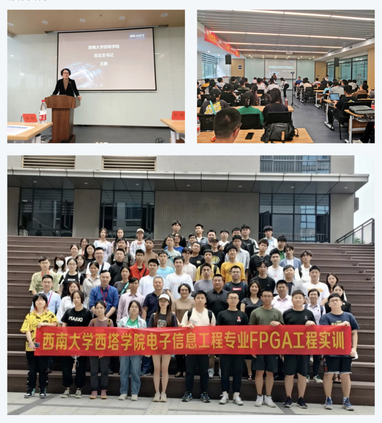 当天下午,王静书记一行还在成电少年学重庆大学生实训基地出席了西塔学院电子信息工程专业集中实习开班仪式。王书记在开班仪式上讲话时对参加此次集中实习的全体同学提出了希望和要求,希望大家通过此次实习将理论与实践相结合,查找并弥补以往学习中存在的短板,全面提升专业技能和实践运用能力,力争做到学有所获、学有所成。同时,王书记也代表学院对参与此次实习指导工作的相关企业和导师表示了衷心感谢,并希望通过此次实习探索建立校企协同育人长效机制,为进一步拓展实习实训基地、为学生提供更多更好的就业机会创造有利条件。