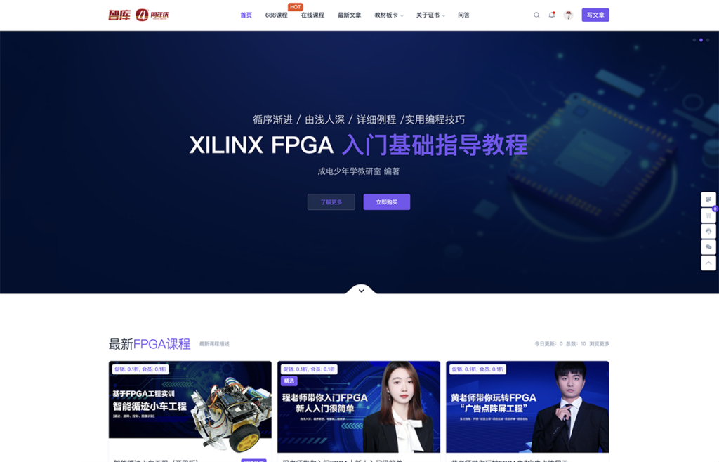 赞!FPGA工程实战课程在线学习免费申请|成电少年学致力于培养复合型FPGA工程师