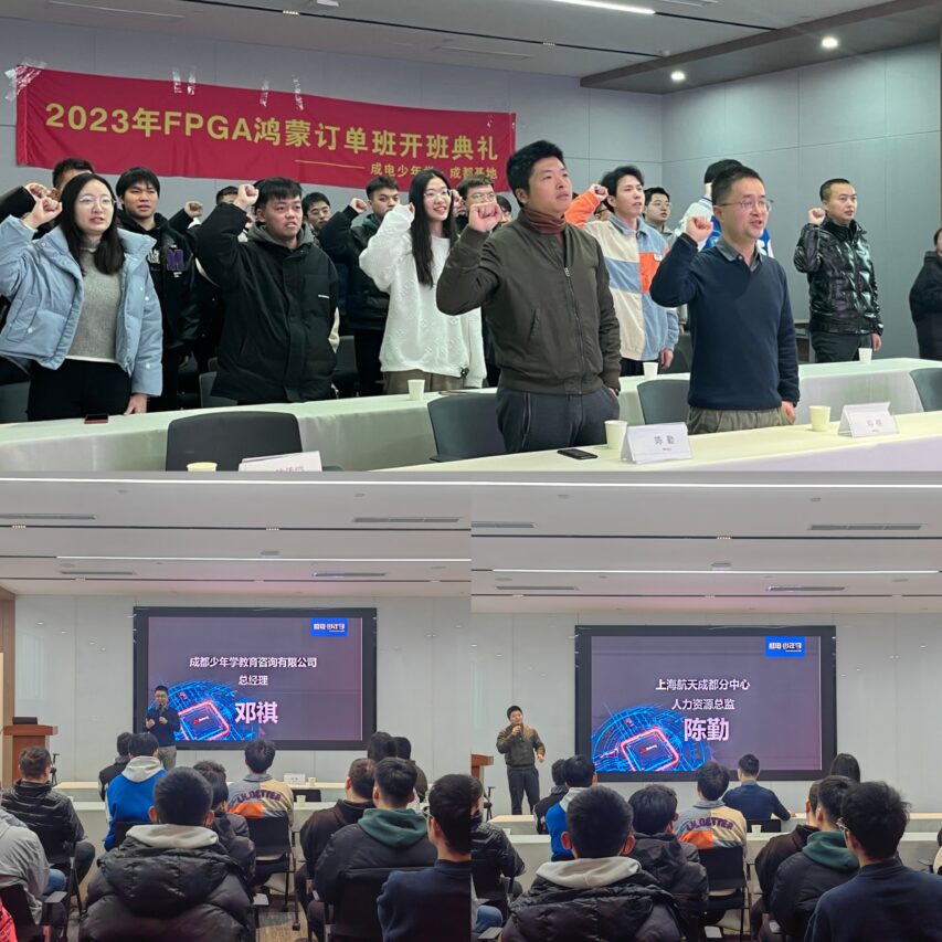 2023年2月27日星期一早上十点,成电少年学FPGA鸿蒙就业班开班仪式在成都、重庆人才培养基地举行。